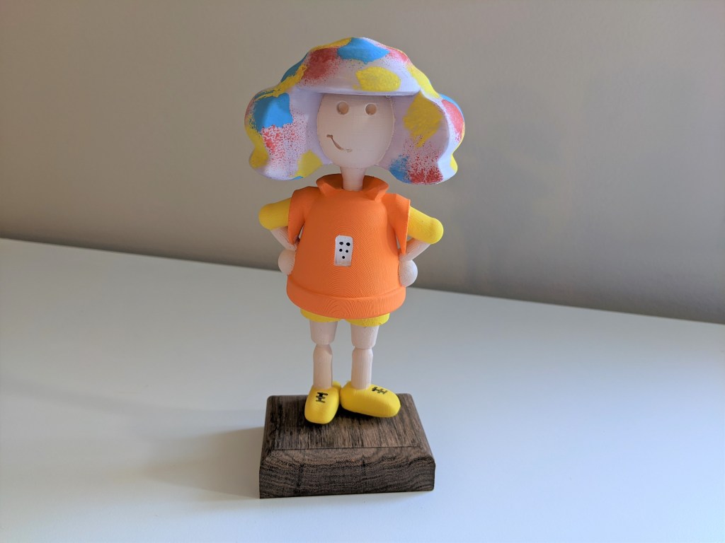 Here are the 3D printing files for Dot. If you want her to be able to stand up, you will need to attach her onto a base (we screwed her feet onto a small piece of wood, but you could also use hot glue!).