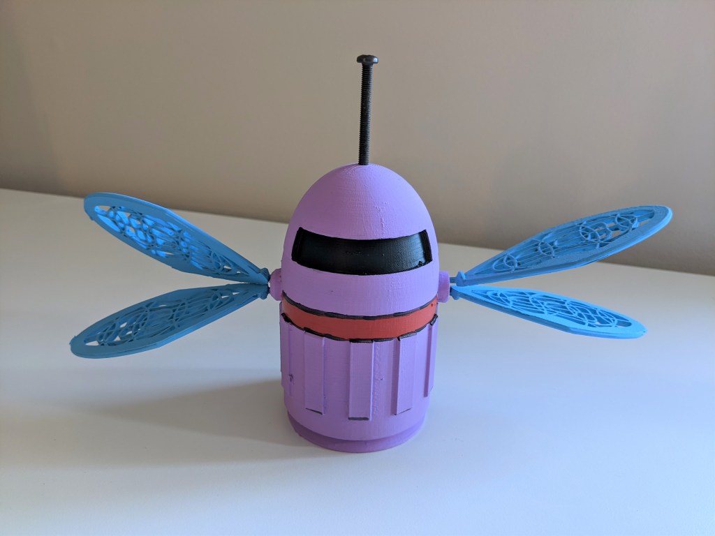 And here are the 3D printing files for the Heavy Lifter robot. We put a black screw in the top of his head to represent his antenna (which you can also use to hang him from the ceiling!), but you could also use a pipe cleaner.