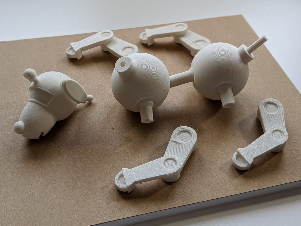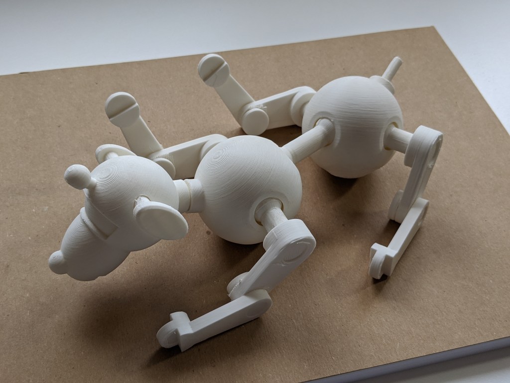 Each of the joints is printed in place. When they first come off of the printer they will be a bit stiff, but they can be moved by wiggling them around until the supports inside of the joints break apart. We repeated this process for each of Sparky’s body parts.