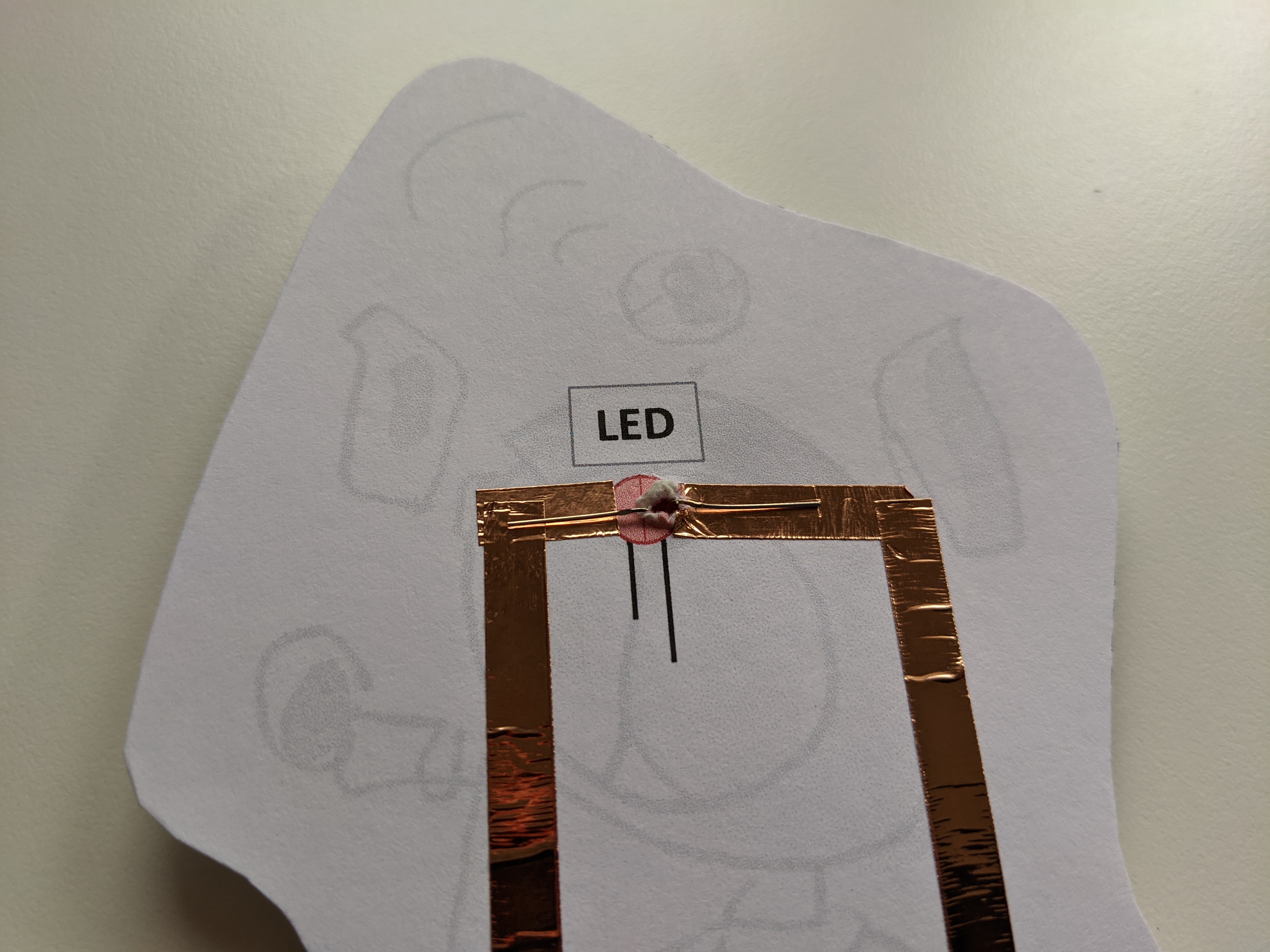 Next, using the copper tape, tape along the red line and onto the rectangle.