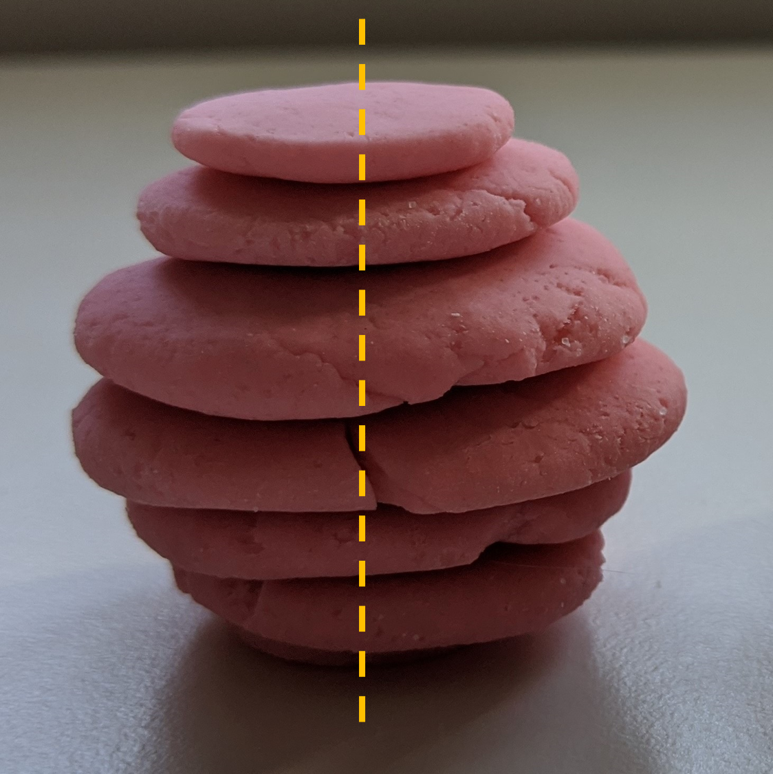 The last thing to consider is how orientation will also change how strong the object is. For example, if I drop the sphere below, how do you think it will break? Along the middle (left image), or between two of the layers (right image)?